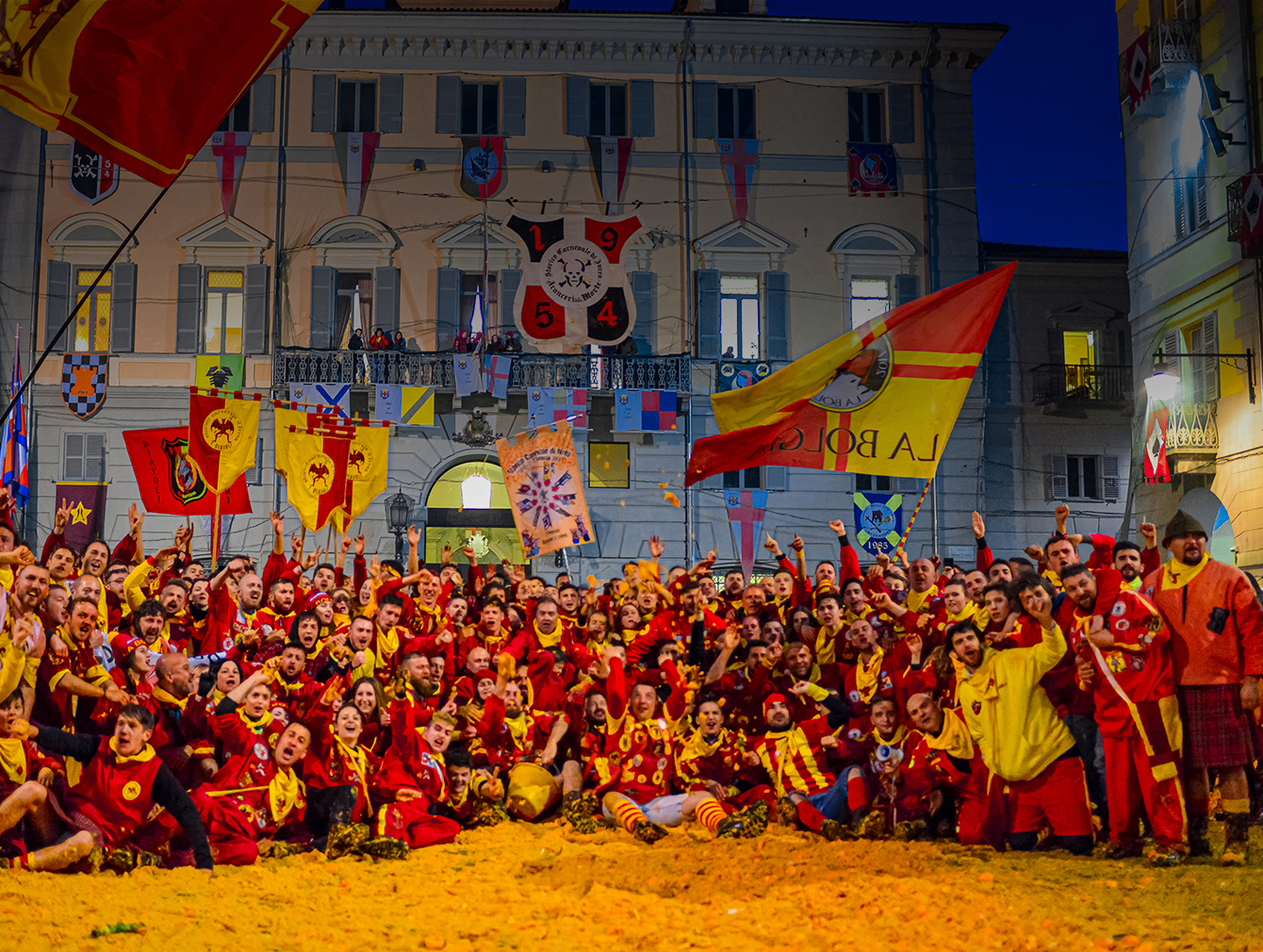 La competizione, durata tre giorni tra domenica, lunedì e martedì grasso, ha visto una corsa appassionata all’ultimo volo di arance: i Diavoli si sono aggiudicati la vittoria davanti alla squadra degli Scacchi, classificatasi seconda, e all’Asso di Picche, che ha chiuso al terzo posto nell’anno in cui celebra il suo 80° anniversario.