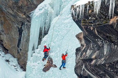 L’arrampicata su ghiaccio, attività che tradizionalmente caratterizza il paesaggio di queste cascate, è sospesa su nove specifiche vie, scelte in base alla loro prossimità al nido e al potenziale impatto acustico e visivo.