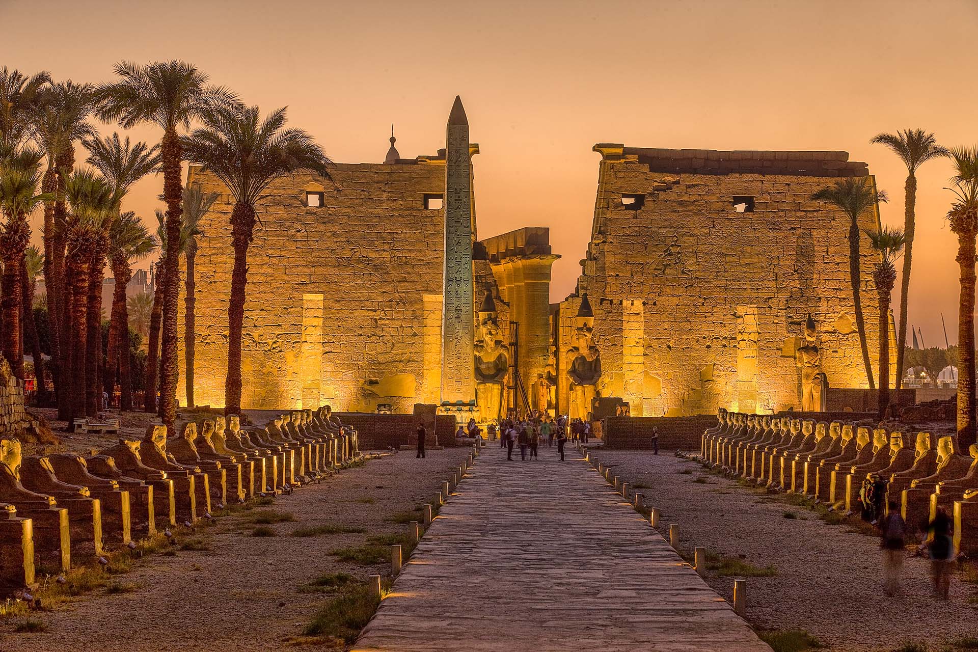 Collega Karnak tramite l’antico “Viale delle Sfingi”. Al tramonto diventa un luogo magico, illuminato da luci calde che mettono in risalto le statue colossali di Ramses II e le sale interne.
