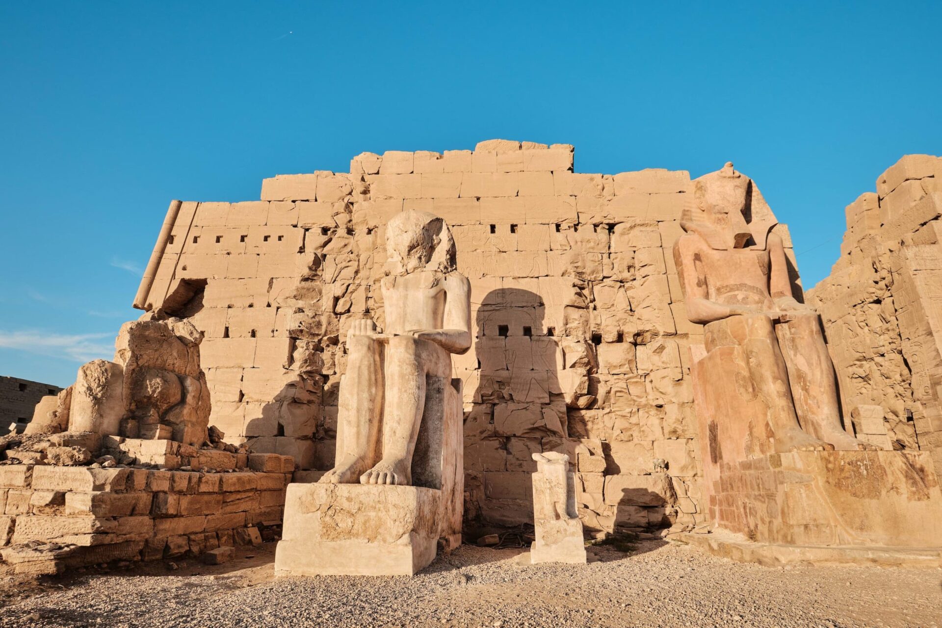 Due gigantesche statue alte 18 metri che sorvegliavano l’ingresso del tempio funerario di Amenhotep III.